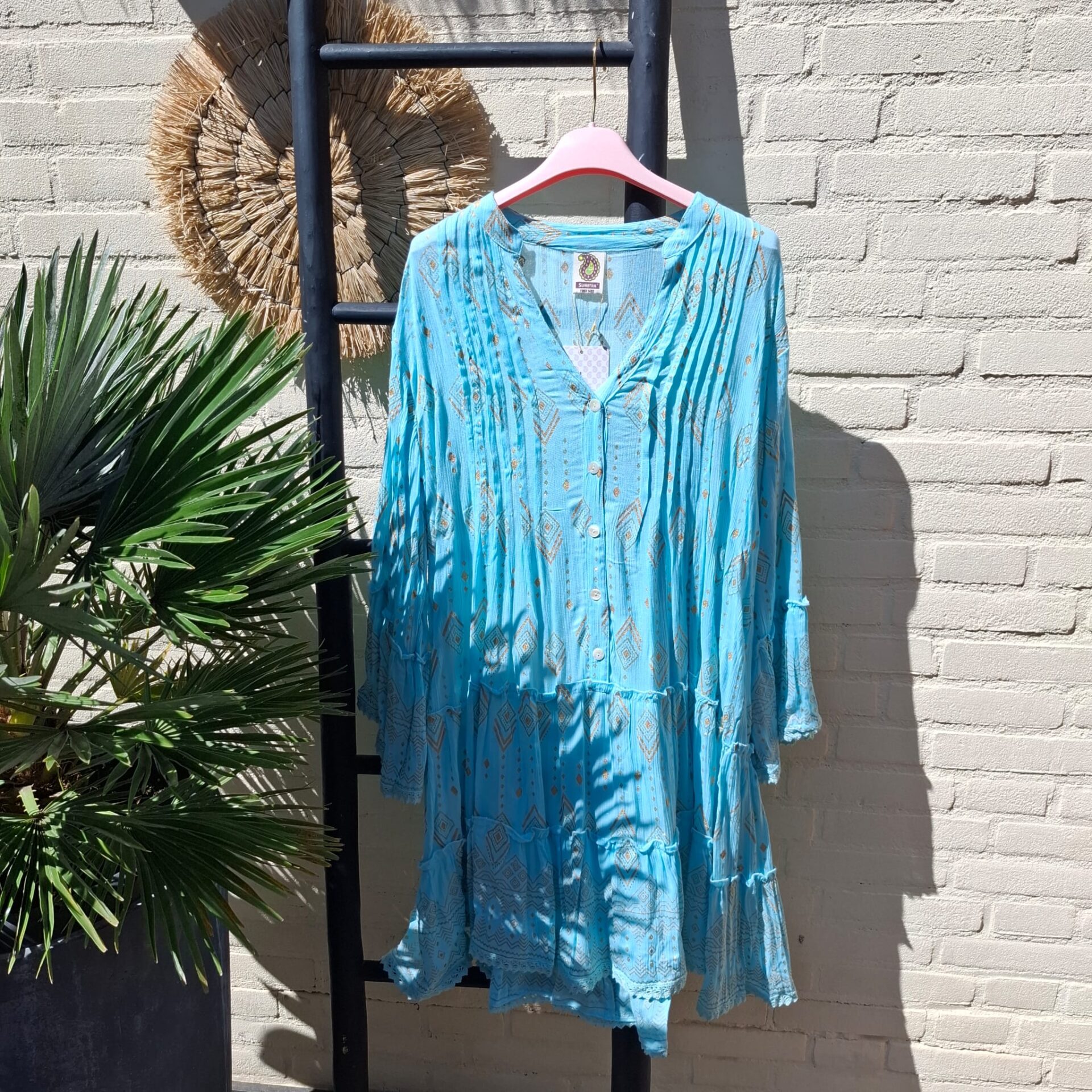 Laat je betoveren door dit prachtige boho jurkje in een frisse kleur, perfect voor zonnige dagen! Dit luchtige damesjurkje van Blend By You Fashion is uitgevoerd in een soepelvallende stof met een speelse Aztec-print in goudaccenten. De V-hals, de subtiel uitlopende mouwen en de zwierige laagjes zorgen voor een vrouwelijke en comfortabele fit.