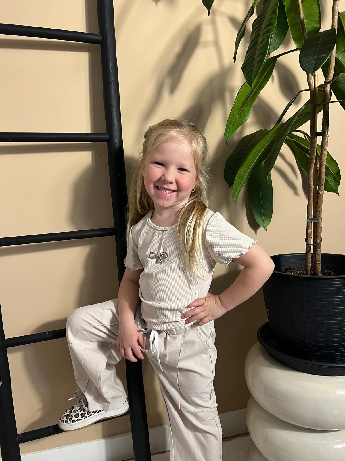 Met dit shirtje met stras steentjes, steelt jouw mini fashionista de show! Zie jij haar al stralen? Wij wel! Leuk te combineren met een van de broeken uit onze collectie.