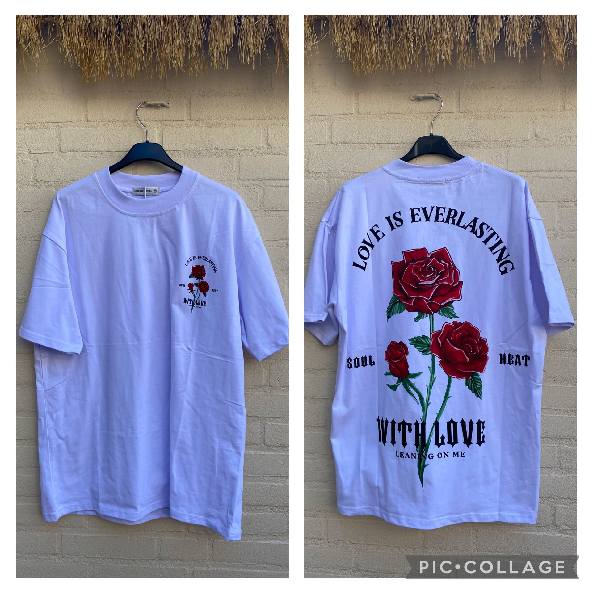 Maak een krachtig fashion statement met ons heren “Love Is Everlasting” T-shirt van Blend By You Fashion. Dit witte shirt is uitgevoerd met een opvallende rozenprint op de rug en een subtiele mini-print op de borst. De rode rozen symboliseren liefde en kracht, terwijl de tekst “LOVE IS EVERLASTING – WITH LOVE, LEANING ON ME” de boodschap versterkt.