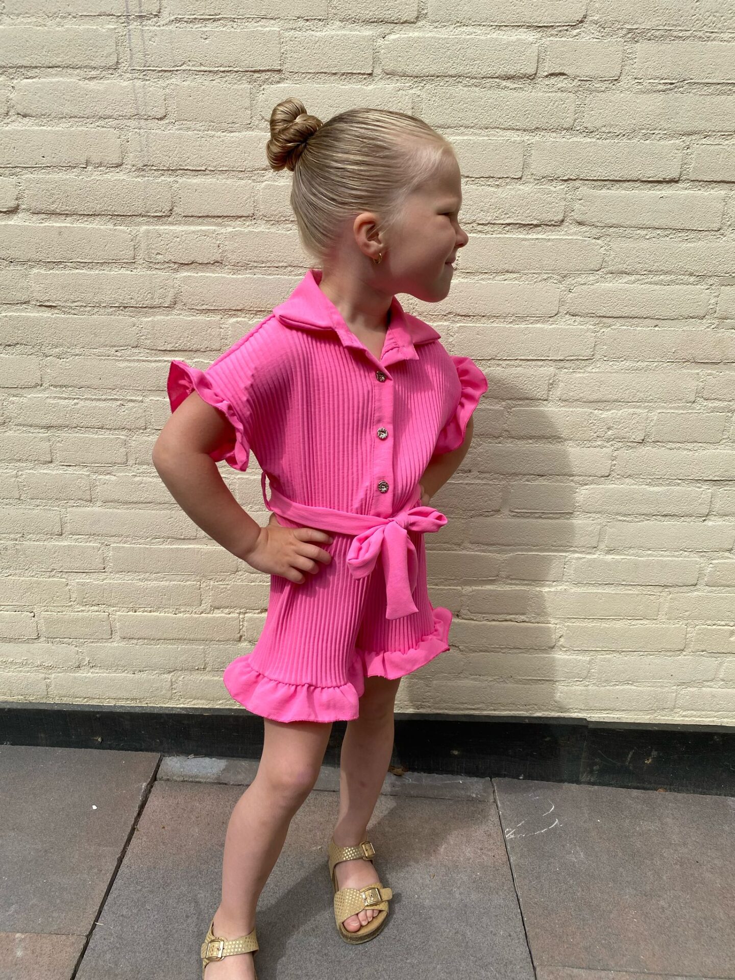 Laat jouw mini stralen in onze superzachte Roze Dreams Playsuit! Deze vrolijke playsuit is een echte eyecatcher met z’n prachtige kleur. Gemaakt van een comfortabel, ribgebreid stofje dat zacht aanvoelt op de huid en heerlijk meerekt.
