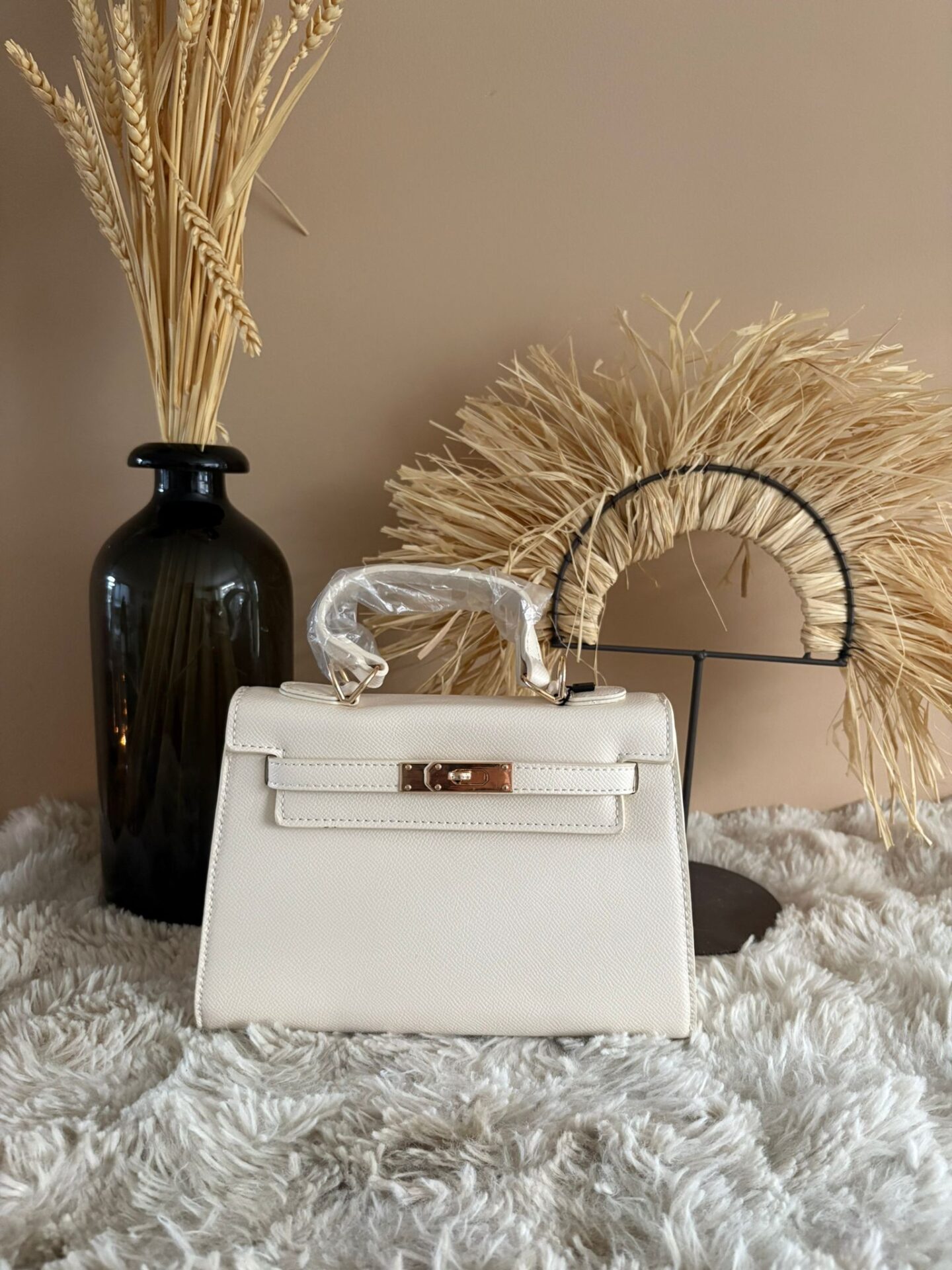 De tas sluit veilig met een metalen slot en is ruim genoeg voor je essentials zoals telefoon, portemonnee en make-up. Het tijdloze ontwerp maakt deze kleine luxe handtas ideaal voor zowel dagelijks gebruik als chique avondgelegenheden. Een elegante must-have die moeiteloos elke outfit naar een hoger niveau tilt.