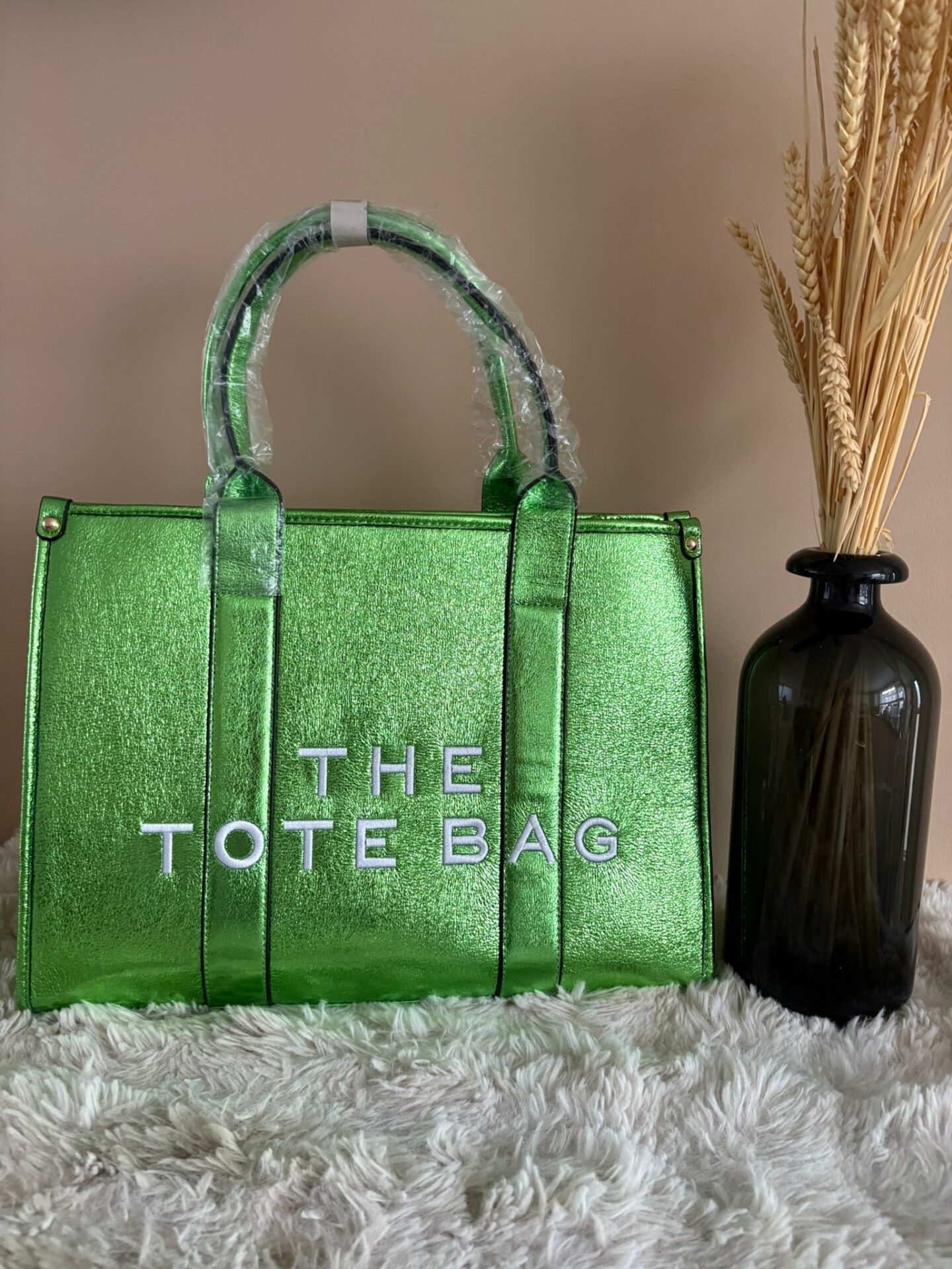 Maak een statement met deze metallic tote handtas maxi formaat, een stijlvolle en ruime tas die luxe combineert met praktisch gebruik. Perfect voor vrouwen die veel ruimte nodig hebben, zonder in te leveren op stijl. Ideaal voor werk, reizen, shoppen of speciale gelegenheden.